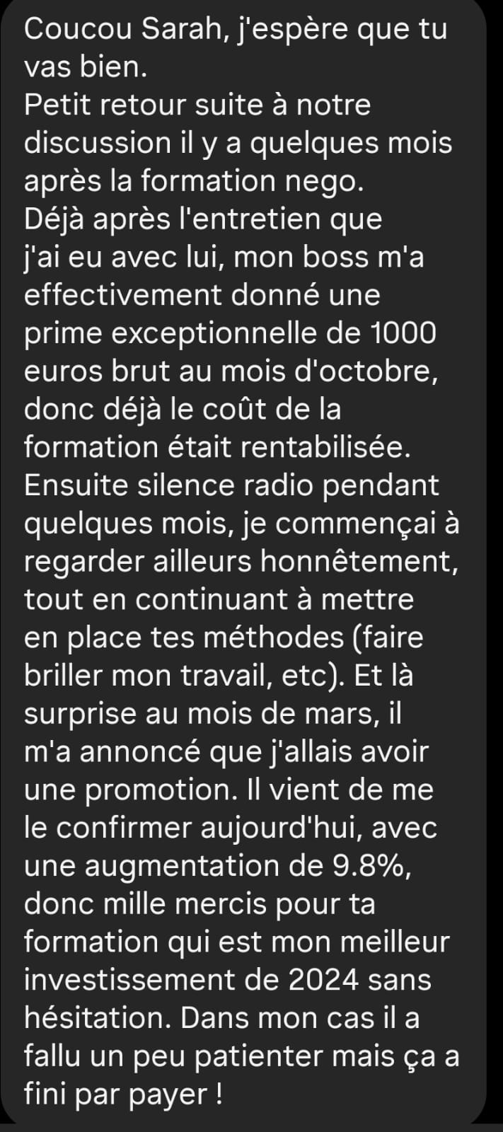 Après 10 ans de négociation de salaire réussie pour moi et près d'une centaine de PowHER coachées qui ont obtenu entre 16 et 77% d'augmentation !