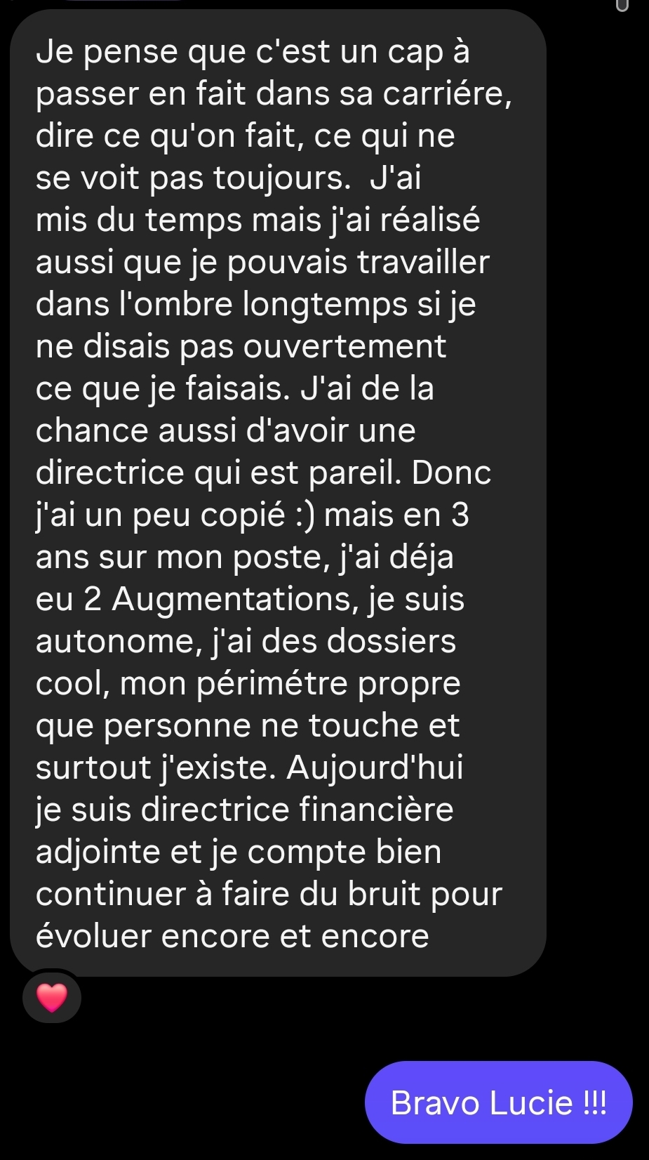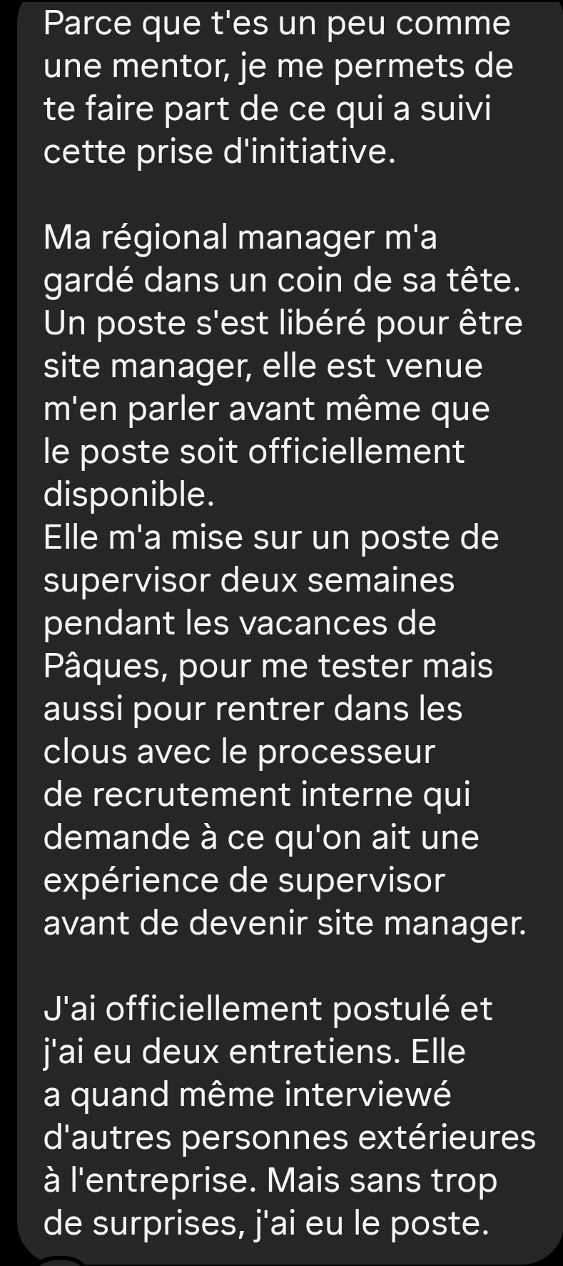 Au contraire. Plus tu apprends tôt à te rendre visible, plus tu gagnes d’années de reconnaissance, de respect et de marge salariale.